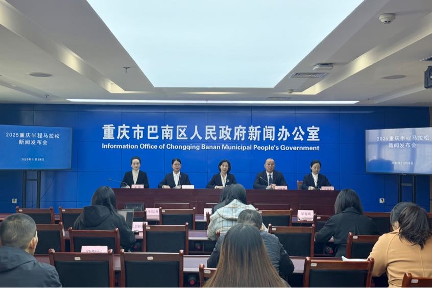 11月28日,2025重庆半程马拉松新闻发布会在重庆市巴南区政府新闻发布中心举行。邓蕊 摄