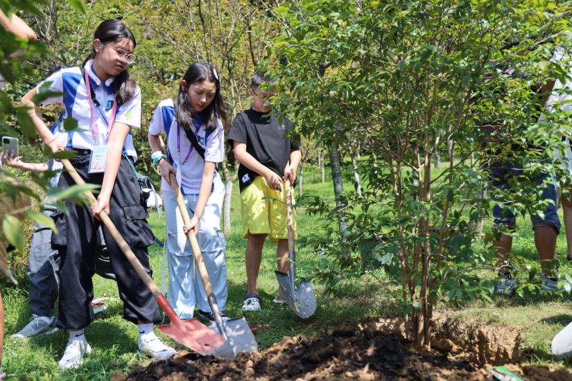 重庆两江新区星湖学校学生罗钰辰则称,这次活动中,最令自己难忘的是种友谊树。虽然天气炎热,但是大家都好开心,一起搬树苗,一起铲土、挂上树牌。种下的这棵树就像我们保护大自然的约定,也是我们友谊的象征,等这棵树长大开花了之后,大家肯定会更加兴奋。