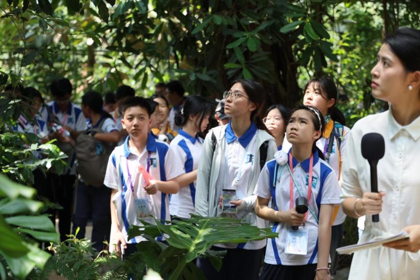 近日,“渝港同心·山水童行”渝港青少年自然探索交流日活动在重庆南山植物园举行。来自香港东区少年警讯和重庆多所学校的青少年们一起种下友谊之树,并在南山植物园科普老师的带领下开启了一场“植物智慧”的发现之旅,去感受“绞杀榕”的生存博弈,触摸附生植物的智慧,感受每株植物为生存繁衍展现的力量与生态价值。