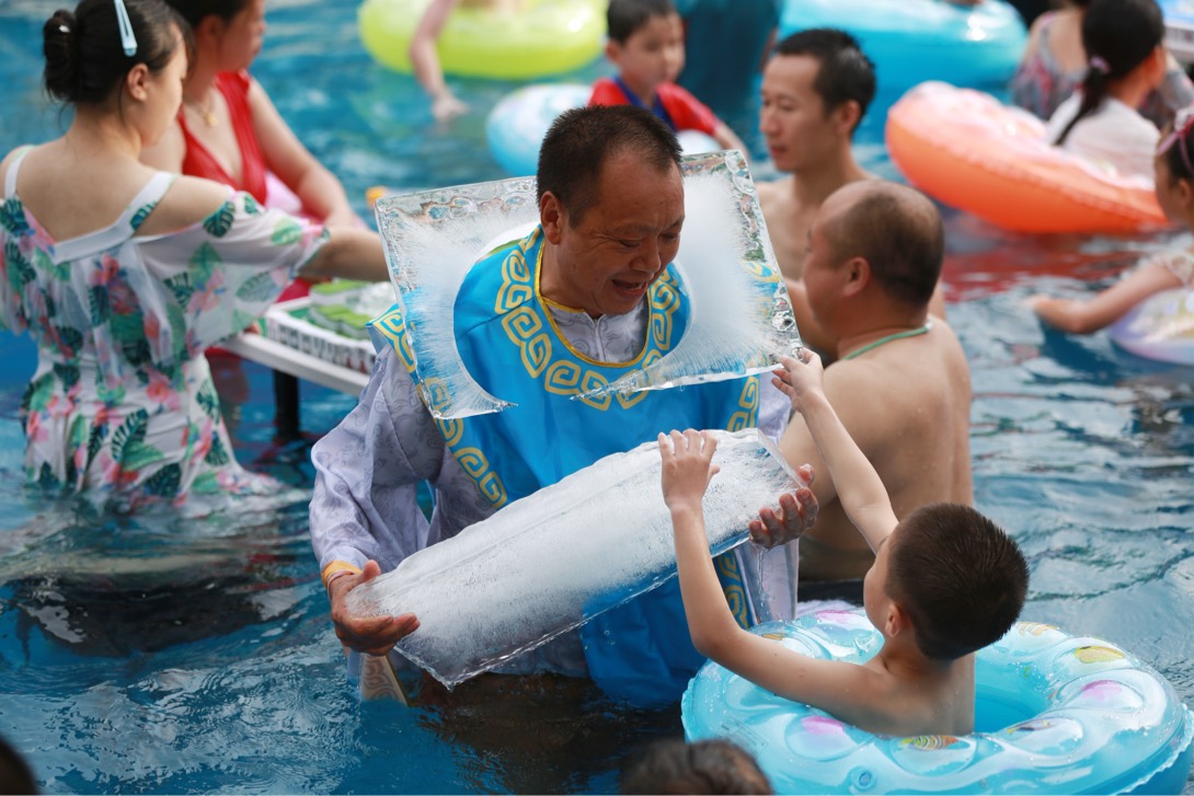 8月23日,正值处暑节气,位于重庆美心红酒小镇的水上乐园以“冰”为媒,打造了一场特别的“秋凉体验日”。活动将传统节气文化与现代消暑方式巧妙融合,通过水中摸冰麻将、给泳池降温、寻宝等互动环节,让游客在炎夏尾声提前感受了一场秋意凉。