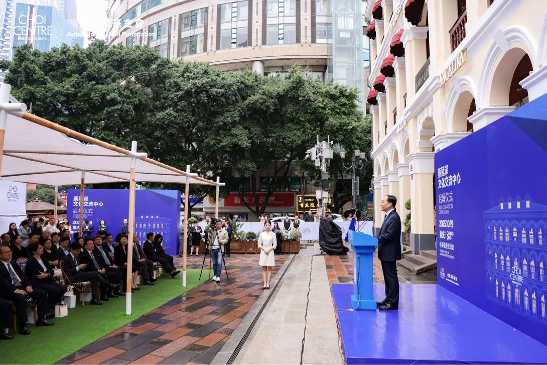 蔡卓思在致辞中表示,蔡冠深文化交流中心将基于渝中独特的历史底蕴和文化禀赋,充分发挥香港新华集团全球网络与资源优势,从功能定位与业态创新入手,通过举办高规格、高质量的文化交流活动、国际品牌发布会、艺术展览等,打造成为集促进服务消费、文化交流、艺术展览于一体的国际交流平台,助力重庆在品牌建设、文化传播、教育交流、经贸投资、社会发展等多维度实现能级跃升,为渝中区乃至重庆市对外开放注入新动能。