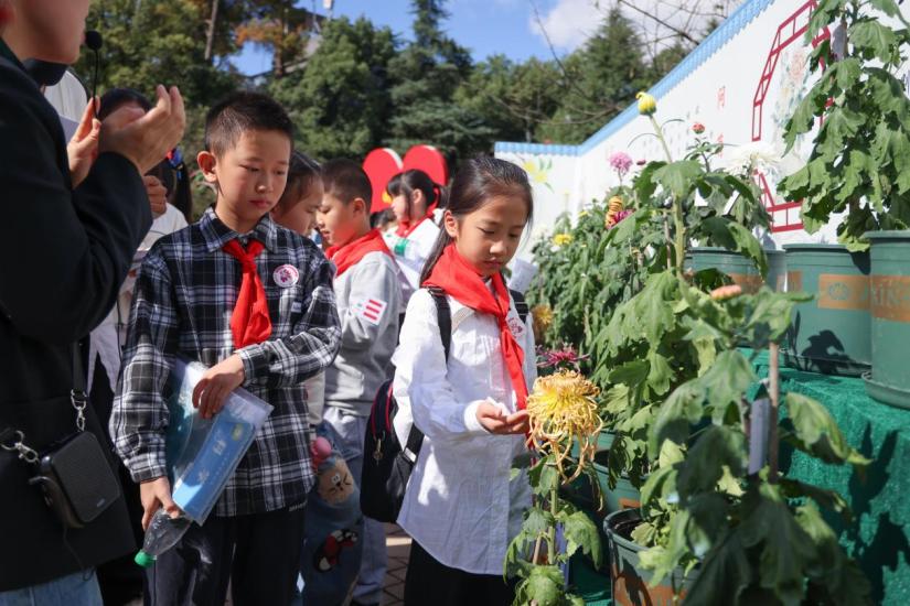 10月23日,重庆市第二十七届菊花艺术展在南山植物园开幕,重庆市南岸区南山珊瑚实验小学校大队委的同学们走进这片花海,开展了一场别开生面的“探秘植物王国,守护绿色未来”金秋赏菊主题班会活动,了解生物多样性,在菊香中感悟自然魅力,在实践中厚植生态理念。