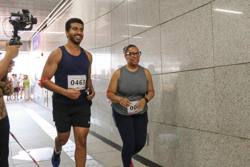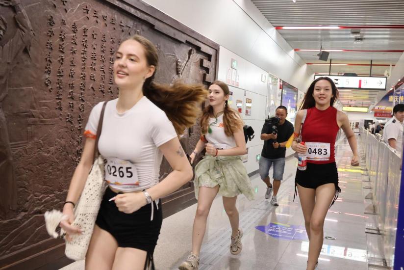活动主办方介绍,红岩村地铁站作为国内最深地铁站,为本次赛事提供了独一无二的赛道。参赛者们从沙坪坝区嘉陵江畔的2号口出发,一路穿越红岩村站站厅,沿着860级台阶奋勇攀登,最终抵达位于九龙坡区经纬大道的4号口终点,垂直爬升141米,相当于39层楼高。