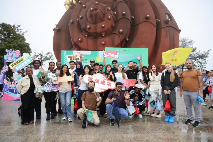 活动开始前,在专业教练带领下,留学生们活力满满地进行着热身运动,舒展身体,为即将到来的徒步登高做好充分准备。