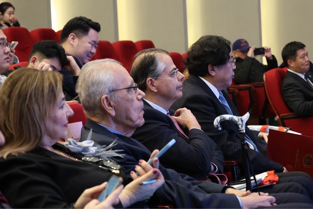 希腊驻华大使埃夫耶尼奥斯・卡尔佩里斯博士在开幕致辞中,强调了卡赞扎基斯在文明互鉴领域的卓越贡献。他指出:“卡赞扎基斯不仅是希腊语言的忠实传承者,更是希腊文明的核心传播者。希腊语作为西方文明的基石,其价值因卡赞扎基斯的非凡表达而愈发彰显。他以其独有的方式连接起中国与希腊,这正凸显了中希文明互鉴中心作为文化桥梁的核心使命——在各民族、文化与人民之间,构建起相互理解的坚实纽带。”