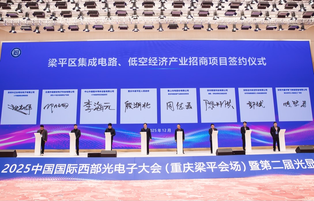12月11日,2025中国国际西部光电子大会(重庆梁平会场)暨第二届光显示大会在国家功率半导体封测高新技术产业化基地、重庆首批低空经济先行试验区——重庆市梁平区开幕。大会以“芯光驱动 智领低空”为主题,聚焦全球光电+泛集成电路、光电+低空经济、光电+显示三大维度,推动相关领域基础研究与产业应用深度融合。