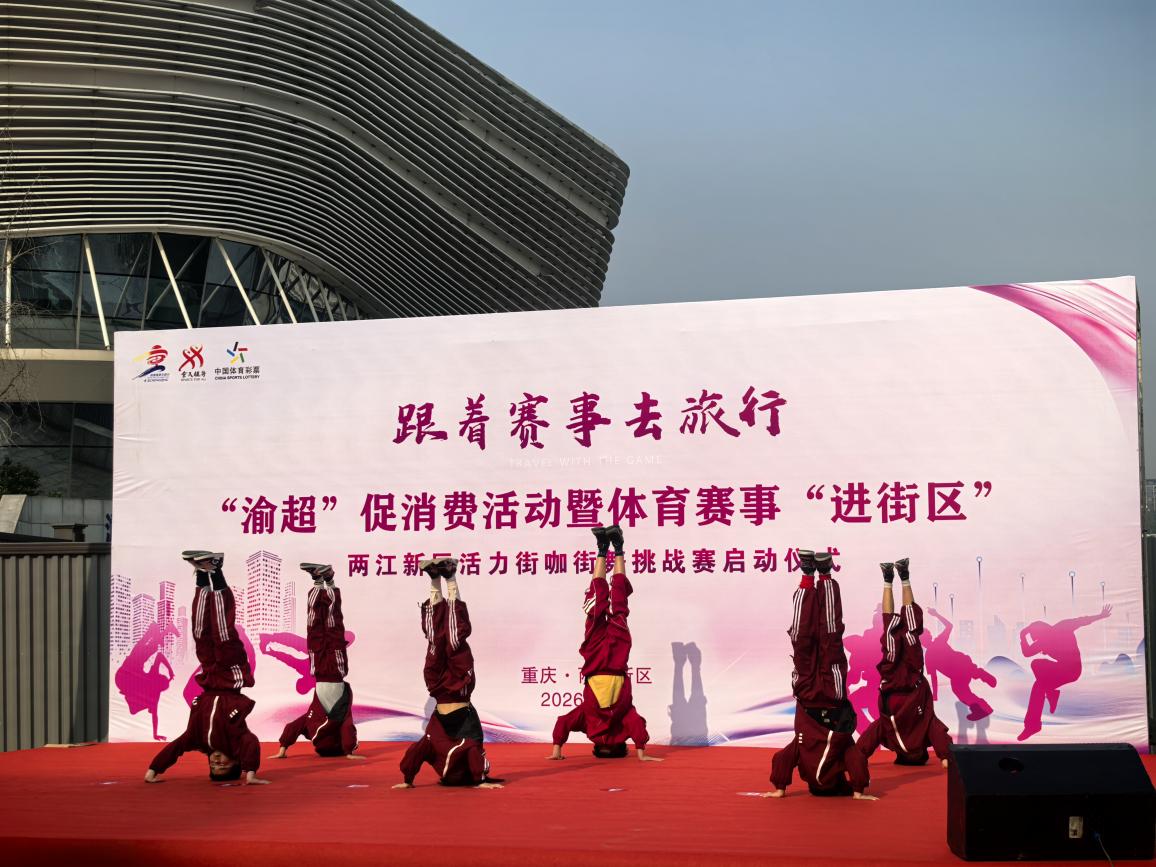 1月10日,“渝超”促消费活动暨“跟着赛事去旅行”体育赛事“进街区”系列活动再添新亮点——两江新区活力街咖街舞挑战赛,在重庆两江新区仙桃街道兰桂大道街区(渝超赛场外)正式启动。冬日暖阳下,大批市民早早聚集,共同解锁这场 “体育 + 潮流 + 消费” 深度融合的城市活力盛宴。